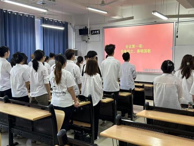 随着会议正式开始,全体参会人员肃立,奏唱国歌,本次大会在庄严的国歌声中拉开序幕。随后,尹佳馨庄重地宣读了上级党委关于同意智能制造学生党支部成立的批复文件,宣布智能制造学生党支部正式成立。