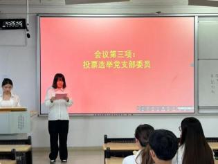 接下来,主持人宣读了党支部委员会的具体选举办法,并公布了候选人、监票人及计票人的名单。参会的学生党员严格遵循选举办法所规定的程序,通过无记名投票的方式,采用差额选举的办法选举产生了支部委员会成员。随后,经过支委会议讨论,确定由朱丽同志担任学生党支部书记、孙蕾同志担任宣传委员、赵芸同志担任纪检委员、彭智同志担任组织委员。