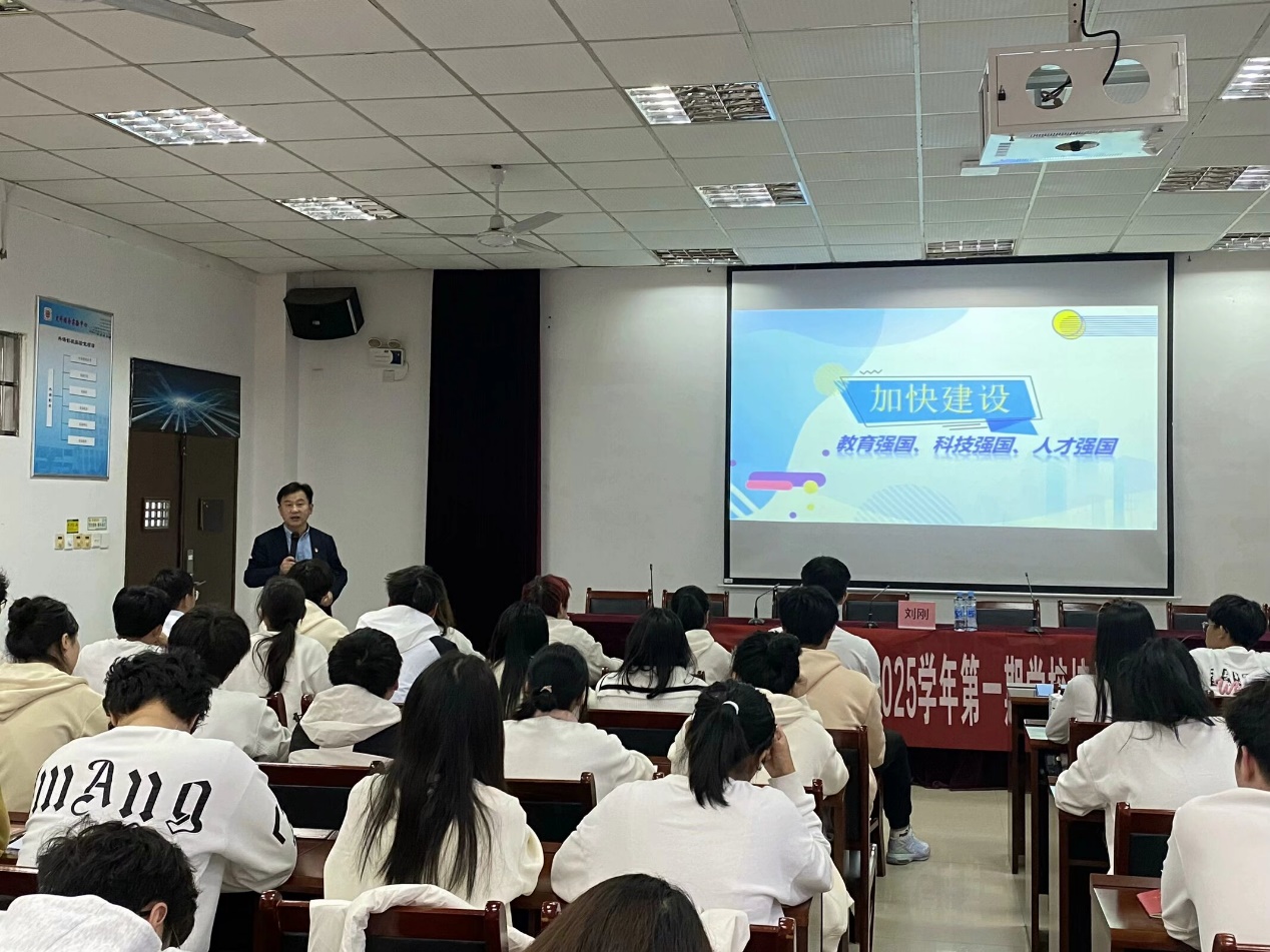 刘刚同志紧密围绕“加快建设教育强国、科技强国、人才强国”这一主题,从“着眼长远发展的重大抉择”、“铸就强国建设的坚实基础”、“加快强国建设的战略部署”以及“充分发挥高校的重要作用”四个方面进行阐述,着重强调了教育、科技、人才在实现中华民族伟大复兴中的关键作用,指出教育是根本,科技是关键,人才是基础。刘刚同志鼓励同学们要勇担重任,深入钻研专业知识,积极投身科技创新,争做新时代科教兴国、人才强国的先锋力量。他勉励大家要不断提升自我,勇于探索未知领域,敢于攀登科技高峰,用智慧和汗水书写无愧于时代的青春篇章。同时,他希望大家要保持谦逊的学习态度,不断学习新知识,掌握新技能,为国家的繁荣发展贡献自己的青春力量。