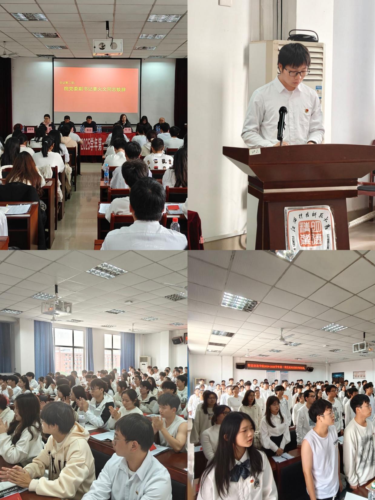 典礼在庄严的国歌声中拉开序幕,由朱丽同志宣布党校培训班正式开班。开班仪式上,姜火文同志代表学院党委对全体参加培训的学员们致以诚挚祝贺。他引用了习近平总书记在二十大报告中的重要讲话,期望大家务必不忘初心、牢记使命,做到谦虚谨慎、艰苦奋斗。随后刘敏致辞,他对学员们提出了思想态度、遵守纪律、学习态度、实践四个方面的要求,强调要以本次党校开班仪式为新的起点,共同开启充实而有意义的学习旅程。紧接着,由校学生优秀共产党员阙谢辉发言,提出党课不仅能学习到党的理论知识,还能增强党性修养,提升政治觉悟。本期学员代表胡佳煜也代表全体学员们承诺,将珍惜此次宝贵的学习机会,严格遵守党课纪律,认真学习党的理论知识,积极参与交流研讨,将所学知识转化为实际行动,为实现中华民族伟大复兴的中国梦贡献自己的力量。最后,全体成员起立,奏唱国际歌,那激昂的旋律是对党的崇高致敬,更标志着此次典礼的圆满落幕。