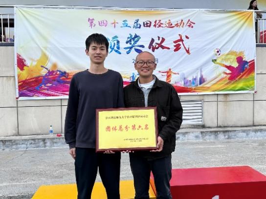 运动会开幕式在欢快的氛围中拉开序幕。开幕式团体操展示环节,我院学生活力四射,动作整齐划一,展现出了青春的活力与朝气。开幕式后,紧张刺激的比赛正式开始。铅球比赛中,运动员们展示了他们的力量与技巧;短跑赛道上,他们如同飞驰的流星,全力冲向终点;跳远赛场上,他们不断突破自我,挑战极限。在激烈的角逐中,我院学生在男子4*100比赛中荣获第四名、男子4*400比赛中荣获第六名、葛安祺在普通学生组男子跳远比赛中取得了第一名的好成绩……现场的加油声,呐喊声不断,比赛场面高潮迭起,扣人心弦。在全体运动员共同努力下,我院最终取得了团体总分第六名的优异成绩。运动会结束后,学院全体运动会参与师生一起合影留念,照片不仅定格了他(她)们热情洋溢的笑脸,更记录了此次运动会上我院师生积极向上、团结拼搏的美好瞬间,展示了同学们的青春风采,彰显了学院的强大凝聚力。