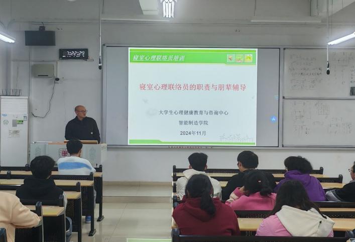 为加强我院学生心理骨干队伍建设,强化四级心理危机预防与干预工作机制,提升寝室心理联络员专业素养与工作能力,williamhill中文于11月21日在Y109教室举办了2024级寝室心理联络员培训活动。培训面向学院2024级全体心理委员及寝室心理联络员,由学工办负责人彭智主持。