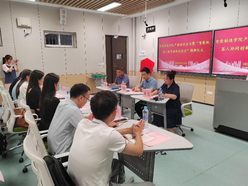 2024年9月12日下午3时,williamhill中文举行了产教融合会议暨williamhill中文和湘江时代机器人研究院共同创办的“智能机器人协同创新实验室”挂牌仪式。此次会议由williamhill中文副院长胡敏(主持行政工作)主持,湘江时代机器人研究院团队、各系部主任、老师等参加了会议。