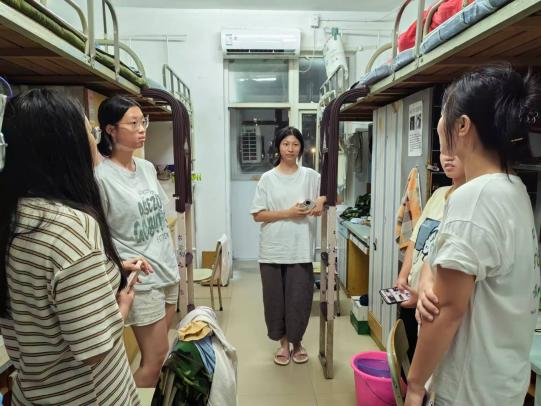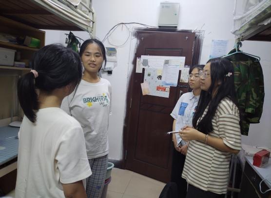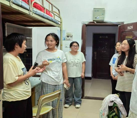走访过程中,老师们与同学们亲切交谈,详细了解同学们新学期学习生活情况,嘱咐同学们节日里给家人、长辈们道一声祝福,对学生是否已领取月饼等中秋慰问品等情况进行了解,向学生们传递殷切希望和暖心祝福;同时,对于第一次离开家乡和父母的新生,勉励新生在新环境中树立信心,保持良好心态,劳逸结合,争取取得优异成绩;针对新生们提出的大学学习、生活和校园安全管理等各方面问题学生干部们进行记录并一一解答,营造了互帮互助良好氛围。
