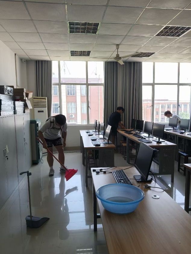 活动中,同学们配合默契,对实验室设备、操作台面、仪器存储柜以及机房电脑、键盘、桌椅等区域进行了细致清洁,不放过任何一处灰尘和垃圾。经过两小时劳动,机房和实验室环境焕然一新,各类物品摆放整齐有序,地面干净整洁,试验台一尘不染。