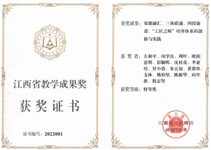 推进产教融合卓越威廉希尔模式改革与实践。形成了制药工程专业“九洲药业班”、旅游管理专业“金牌讲解班”、应用化学专业“卓越涂料工程试验班”等一批产教协同育人特色班。推动校政企产教融合项目落地。在南昌市高新技术开发区主导下,联合全省22所大中专院校、技工院校,与企业推进南昌市光电产业产教联合体(省级)、新余麻纺鞋服市域产教联合体建设。与江西美晨通讯有限公司、泰豪集团等分别共建数智终端制造产业学院(重点)、元宇宙产业学院(培育)省级现代产业学院。